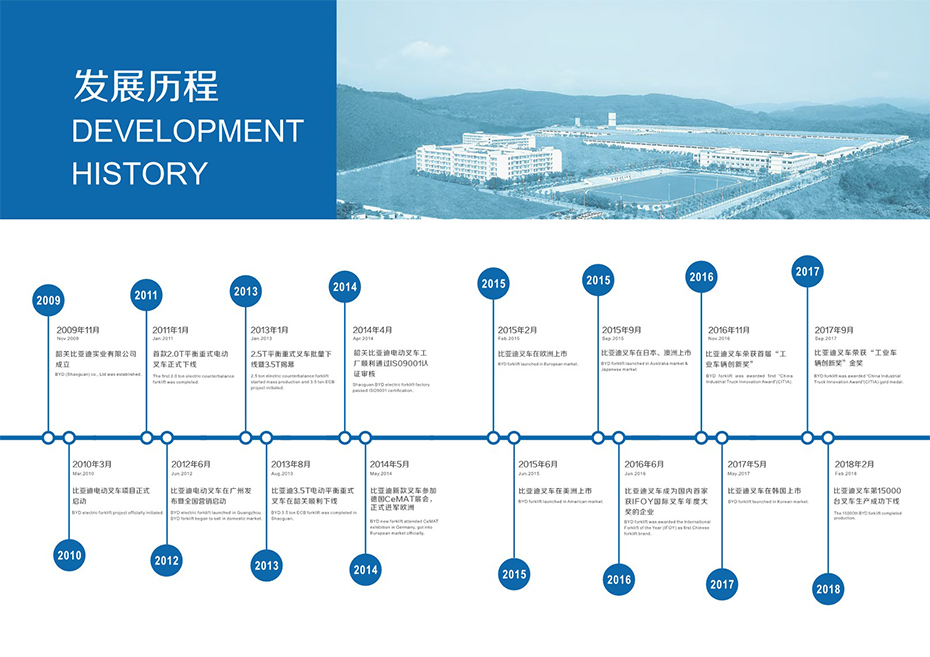 安徽比迪新能源科技有限公司是韶關比亞迪實業有限公司在安徽設立的銷售服務中心,全權負責比亞迪叉車區域銷售與售后服務業務,并服務于重點大客戶和集團客戶,目前已經形成成熟穩定的銷售服務團隊。安徽比迪堅持奉行“客戶導向,誠信為本、信譽為上”的宗旨,注重企業品牌建設和質量誠信建設。公司主要從事電動叉車及小型搬運車輛銷售,電動叉車包括電動平衡重叉車系列、電動倉儲叉車系列、電動牽引車系列等。電動叉車應用領域非常廣泛,其下游用戶覆蓋制造業、物流業、建筑業、食品、紡織業、化學工業、冶金業、能源業等眾多行業。電動叉車可大大節約人力成本、運營成本,提高勞動效率,市場空間廣闊。未來,安徽比迪將以質量優化、服務及時化、品牌差異化為重點,進一步利用自身規模優勢、技術優勢和渠道優勢,實現產品結構化、差異化,更好的為客戶提供全套物料搬運解決方案。歡迎各界朋友蒞臨參觀、指導和業務洽談!依托比亞迪集團的強大的運營網絡,歷經近十年的匠心打造,比亞迪電動叉車足跡已遍布中國各地,并成功進入英國、德國、法國、意大利、西班牙、荷蘭、美國、加拿大、巴西、新加坡、日本、韓國、澳大利亞等多個海外市場,覆蓋六大洲。比亞迪叉車以新能源技術和實力為根基,為客戶提供全流程的場內物流整體解決方案,降低物流搬運成本、提升物流搬用效率,以綠色、低碳的革命性技術和產品,從容應對各種復雜工況,為客戶創造更大價值。比亞迪相信技術可以改變世界,造福人類。比亞迪不僅擁有綠色的夢想,更有將綠色夢想變成現實的技術和解決方案。立足好的新能源技術,打造“四大綠色夢想”--太陽能電站、儲能電站、電動車和軌道交通,改變傳統的能源消耗方式,改善環境,實現人類的可持續發展。
